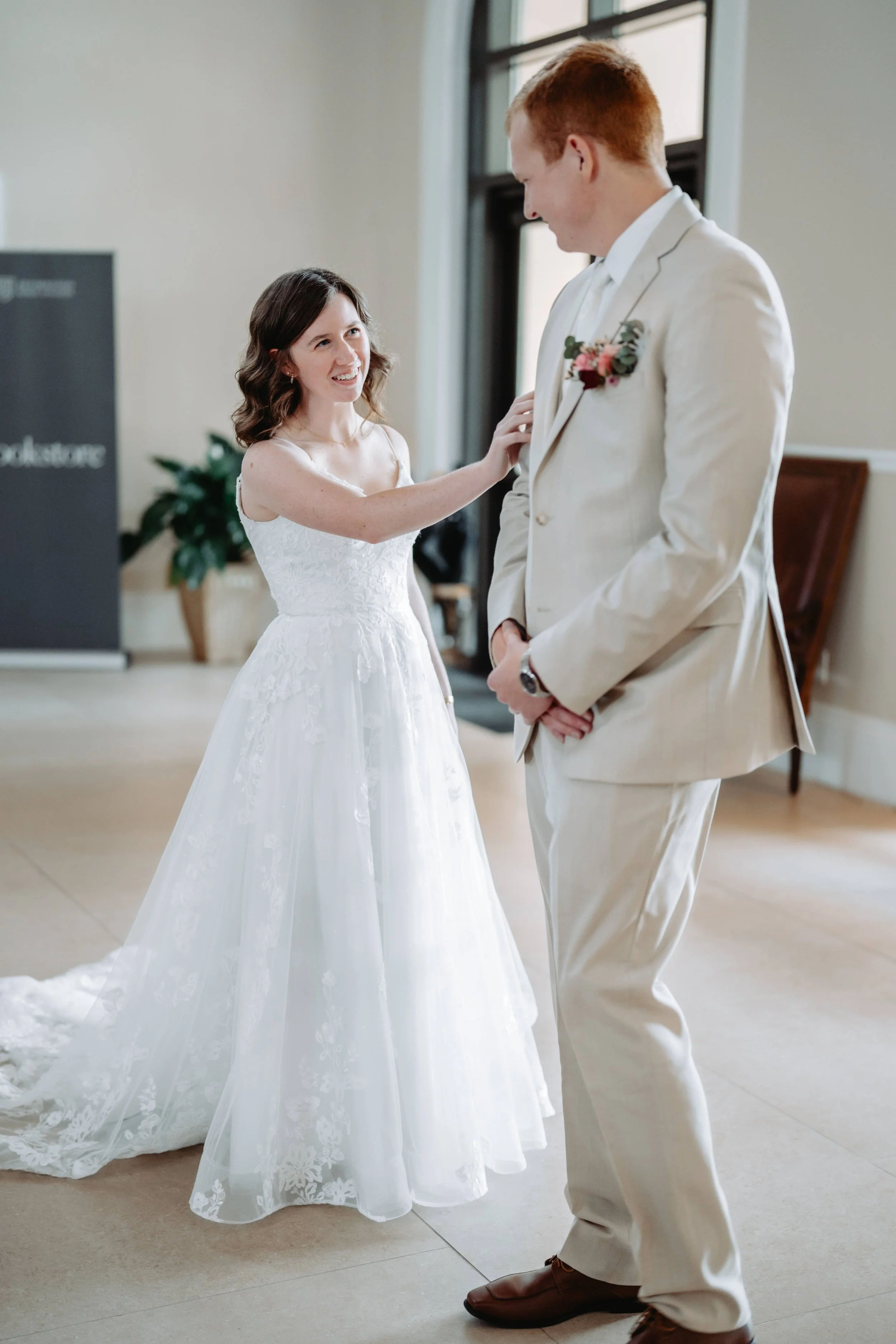 If you haven’t heard of a ‘first look’ before, it’s a special moment where I help coordinate the setup, ensuring your fiancé doesn’t see you until the perfect moment. Once they turn around and take in the sight of you all dressed up, I capture their raw and beautiful reaction.
