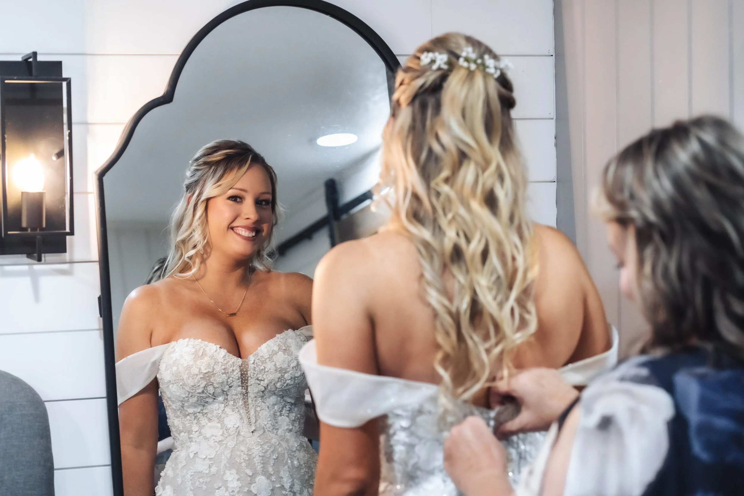 I like arriving at the bride’s prep location just as she’s finishing her hair and makeup. It’s the perfect time to capture those last, stunning touches. Once she’s ready, we’ll capture the bride’s completed look, intimate moments like the mother or maid of honor buttoning up the dress, and the bridal party’s heartwarming reactions to seeing her in her dress for the first time—along with all the special moments that unfold in those precious morning moments.