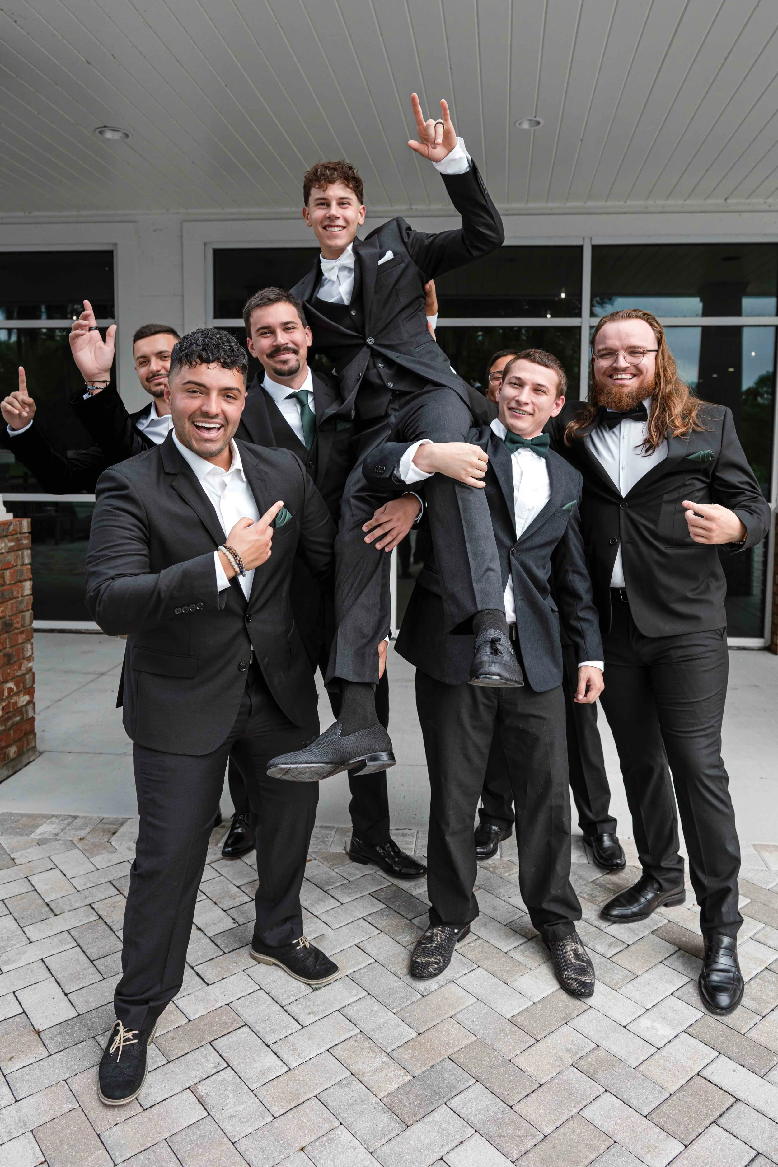The amount of time needed for wedding party photos depends on the size of your group, but I generally recommend setting aside 20-30 minutes. If little ones, like ring bearers or flower girls, are involved, we may need extra time since kids can be unpredictable. This allows us to organize everyone smoothly while also capturing some fun and creative group shots.